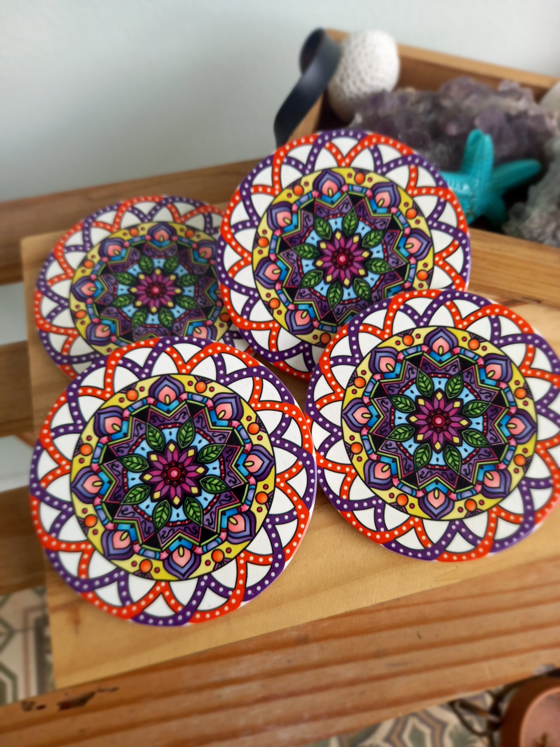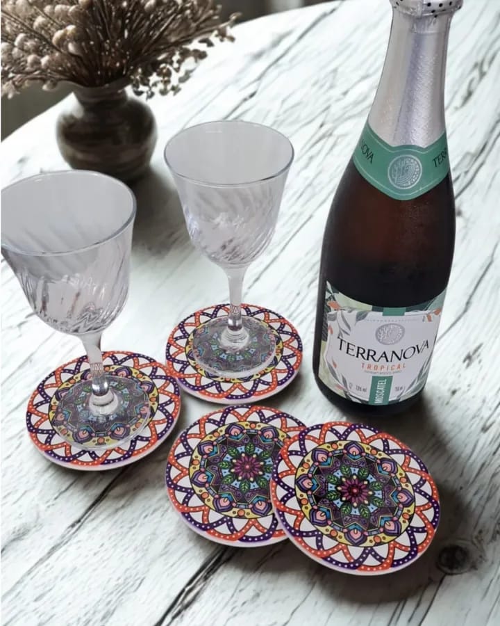 Transforme o seu ambiente com esses lindos porta-copos com estampa de mandala, cheios de cor, harmonia e boas vibrações! 🌈